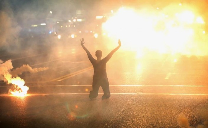 Yet I see people unmoved by this, uninterested by this. How? Amnesty International is deploying in the USA for the very first time ever. Reporters have been arrested in McDonald’s, have been corralled far away, are donning bulletproof vests on air at 3:15 pm. Ferguson is turning into a war zone, an authoritarian zone, and it’s because people on both sides are angry and afraid, and justifiably so.